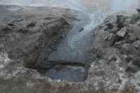 «Эта яма появилась примерно десять дней назад на пересечении улиц 1-я Центральная и Крупской, асфальт провалился, всё это время туда стекала талая вода», — сообщили горожане.