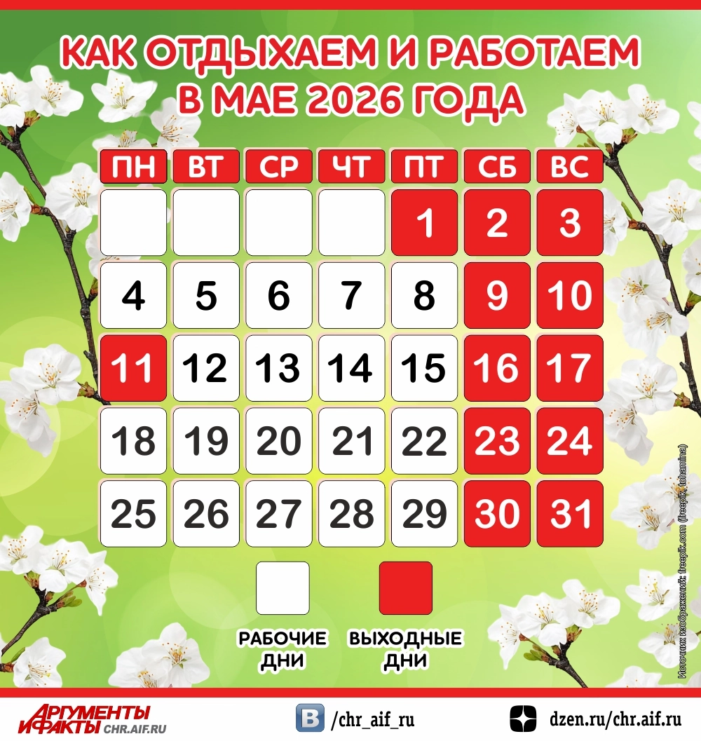 Как отдыхаем и работаем в мае 2026 года? Инфографика