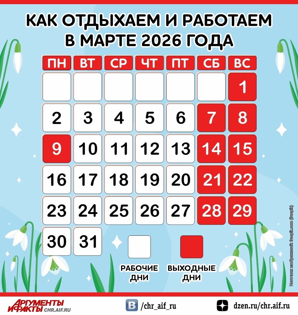 Как отдыхаем и работаем в марте 2026 года? Инфографика