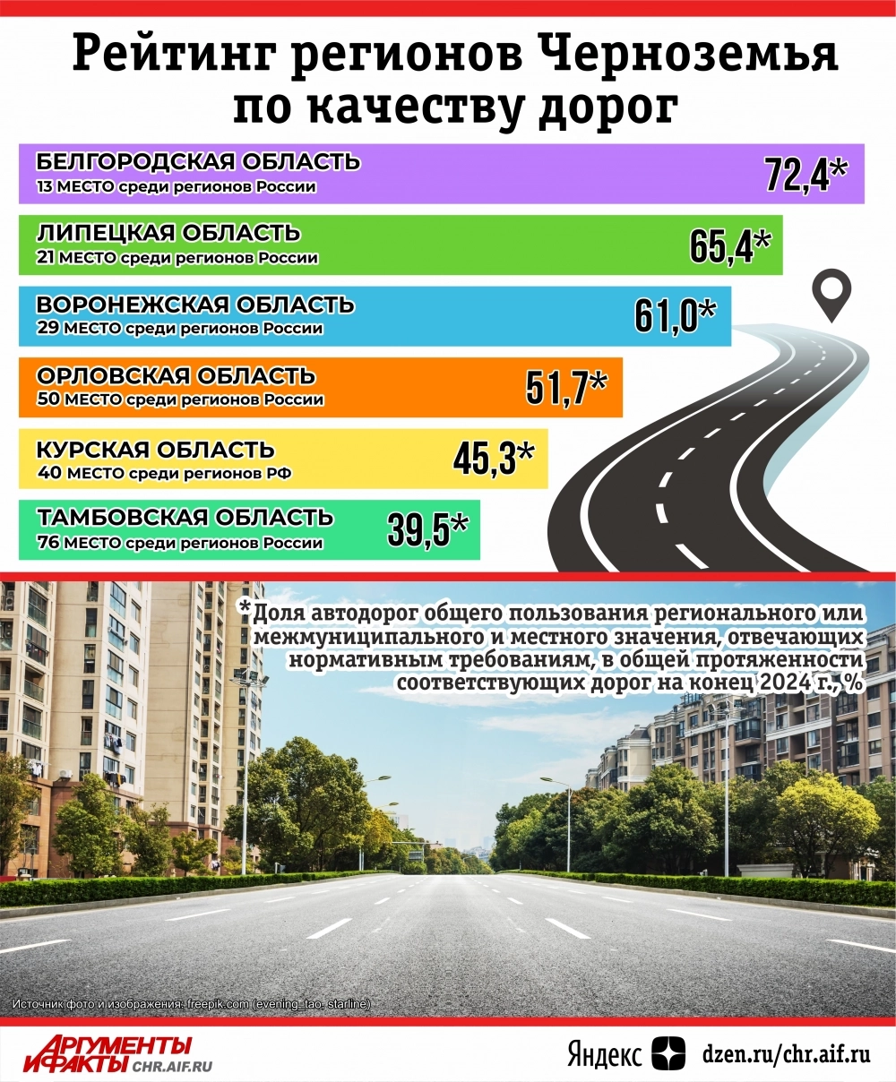 Рейтинг регионов Черноземья по качеству дорог. Инфографика
