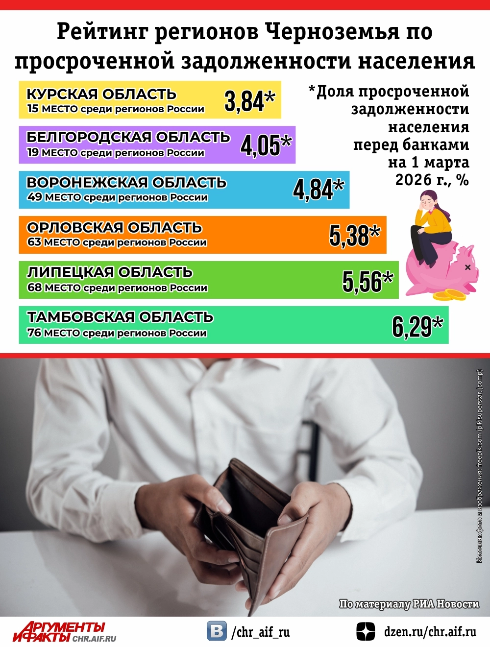 Рейтинг регионов Черноземья по просроченной задолженности населения
