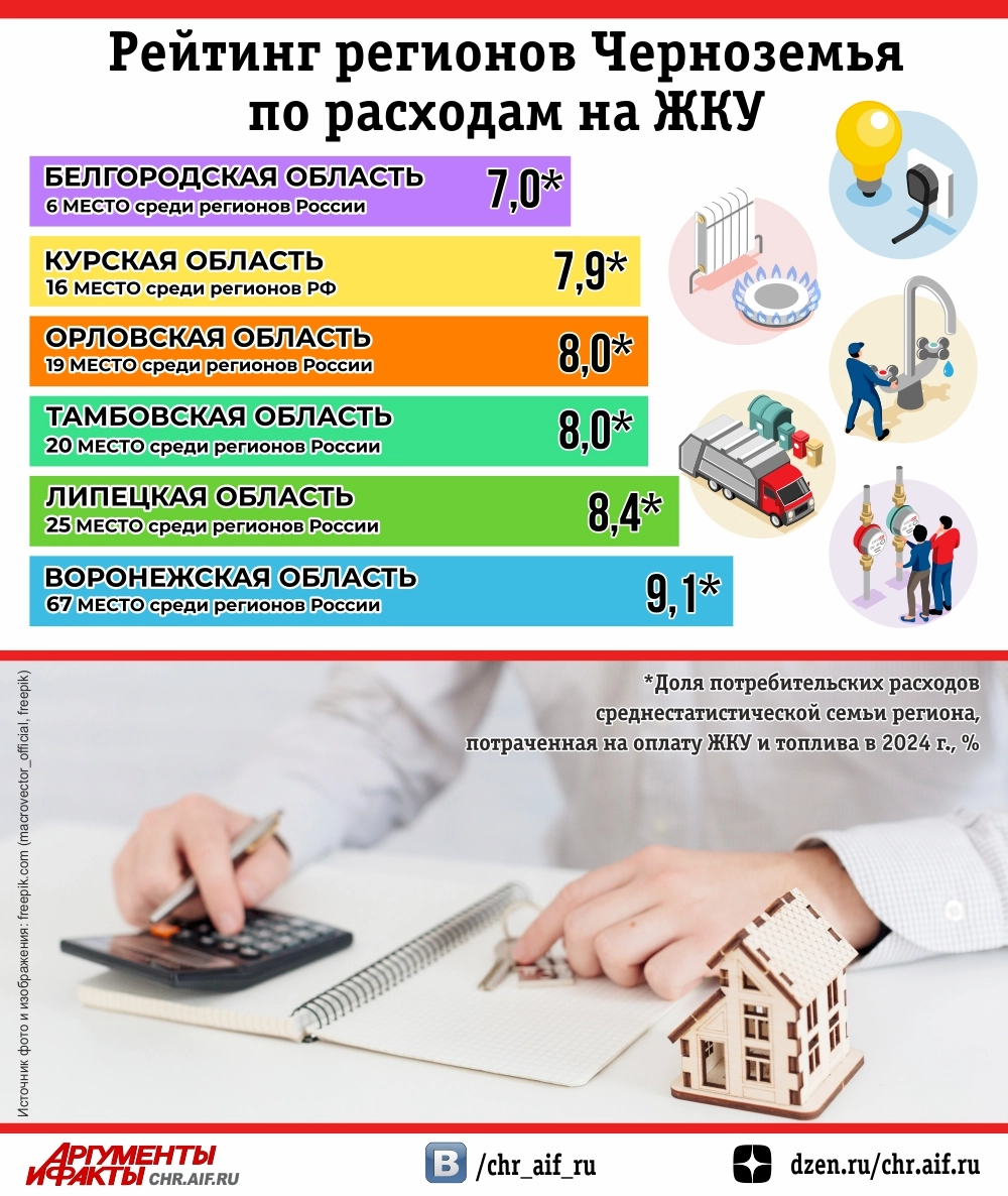 Рейтинг регионов Черноземья по расходам на ЖКУ. Инфографика