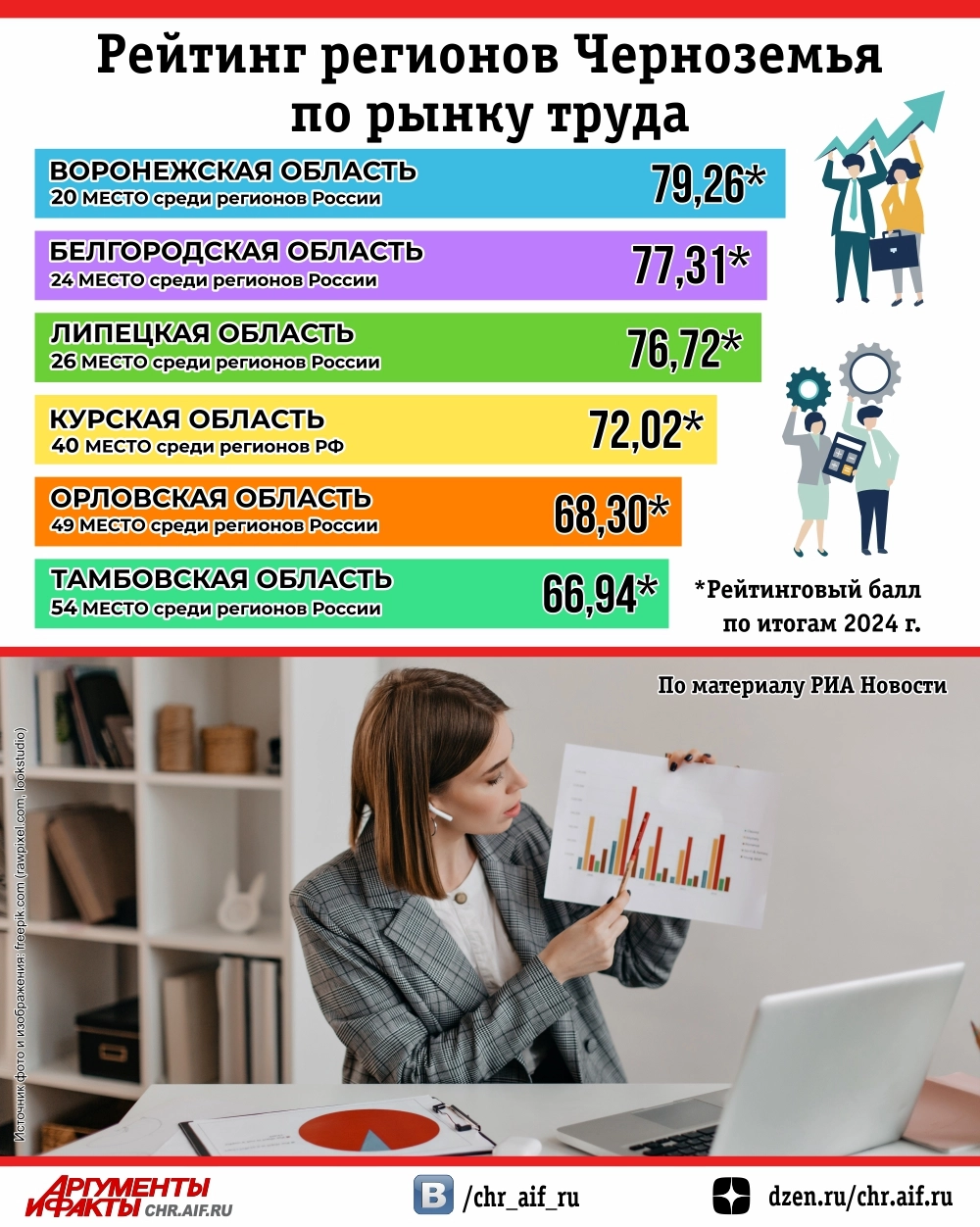 Рейтинг регионов Черноземья по рынку труда. Инфографика