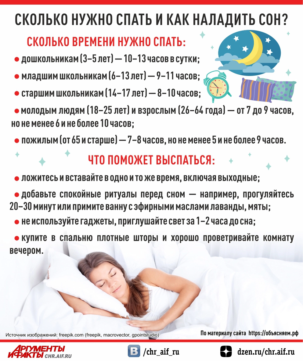 Сколько нужно спать и как наладить сон? Инфографика