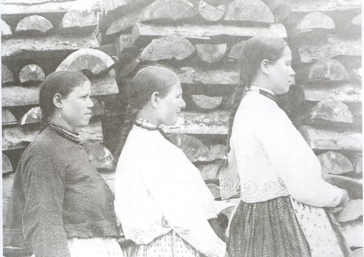 «Обязанности жены по дому, в „которые муж не вступается“, состояли в обшивке и обмывке детей, топке, уборке избы, льна, изготовлении одежды для всей семьи, — говорит историк Галина Лаухина. — Помимо этого, на плечах женщины лежала забота о саде и огороде, которые были в каждом хозяйстве, а также уход за домашним скотом».