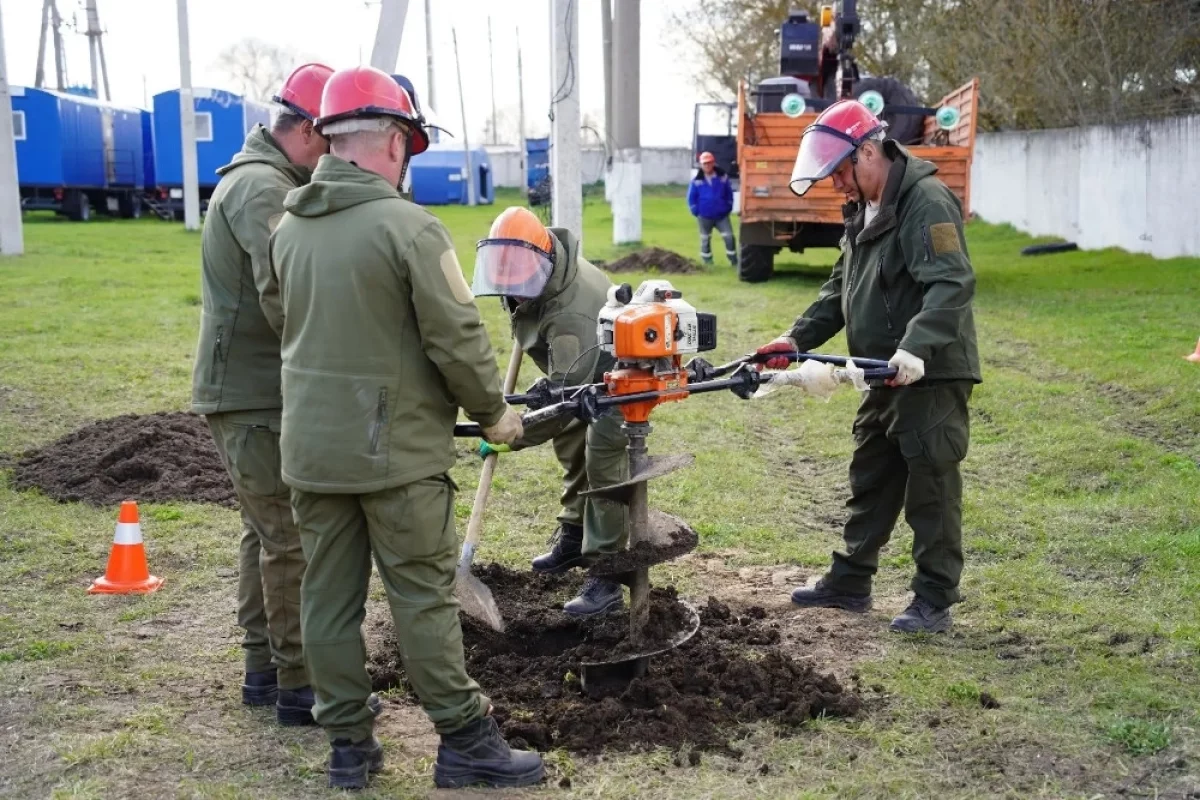 Наставниками выступили специалисты высокопрофессиональной бригады Большесолдатского РЭС. Около полутора лет они сосредоточены на восстановлении электроснабжения в курском приграничье. В рамках практических занятий они продемонстрировали метод установки опоры в условиях ограниченного пространства с применением мотобензобура. Этот инструмент используется на тех участках, где применение автовышки невозможно. В дальнейшем подобные занятия руководители проведут с персоналом РЭС на местах — во всех уголках Курской области.