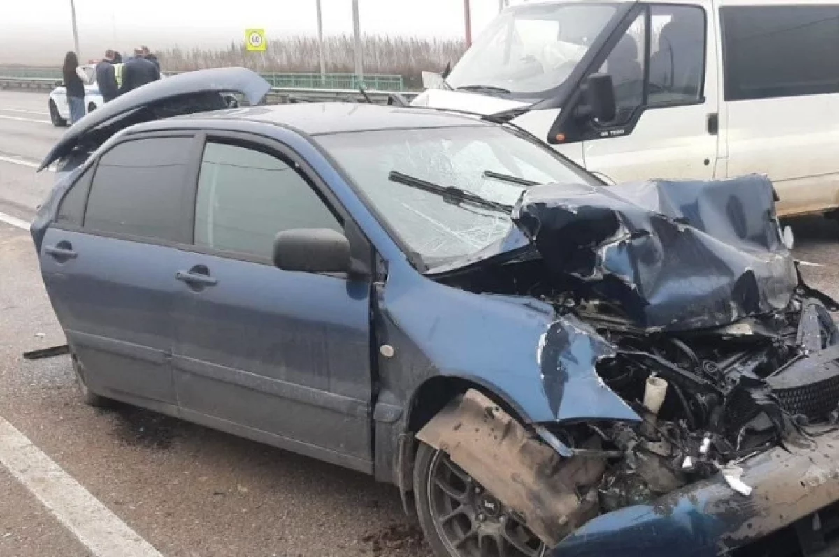 По словам главы региона, микроавтобус врезался в автомобиль, который стоял перед красным сигналом светофора. После этого, судя по фото, машина врезалась грузовик, стоявший перед ней.