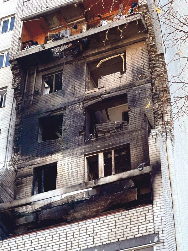 В многоквартирном доме на улице Заводской – пробоина в стене, обрушены перекрытия, несущие конструкции и ограждения лоджий, перегородки в квартирах. Пострадали три верхних этажа, расселили 17 квартир.