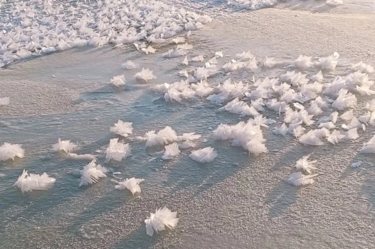 Жители Хлевенского округа стали свидетелями необычного природного явления. На тонком льду местных водоёмов появились причудливые ледяные образования, похожие на хрупкие соцветия и ветвистые папоротники, покрытые инеем. «Ледяные цветы» стали настоящим подарком природы для местных жителей и фотографов.