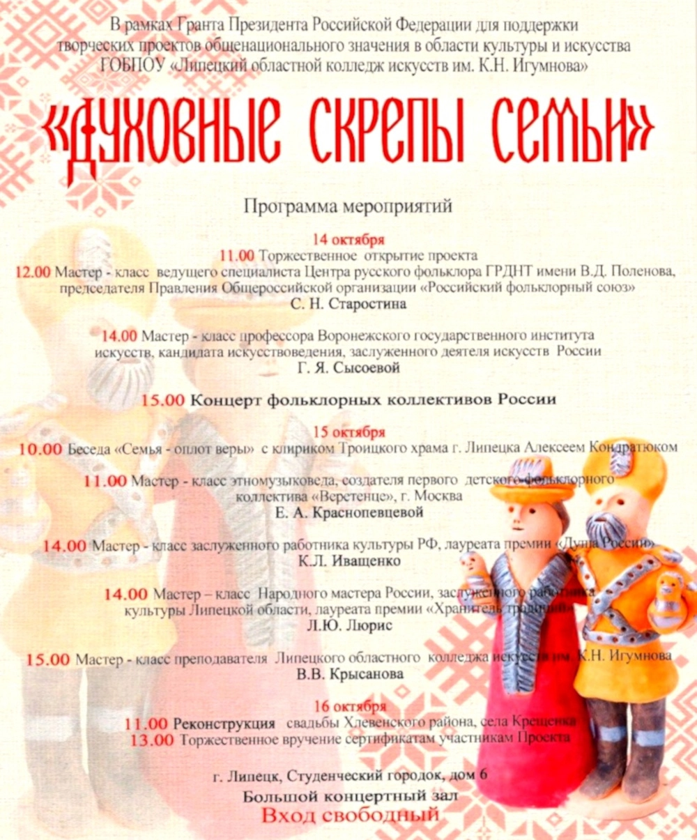 Проект реализуется Липецким областным колледжем искусств имени К.Н. Игумнова на средства гранта Президентского фонда культурных инициатив.