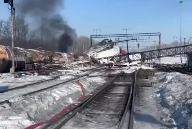 Стена огня. Крупный пожар на станции в Мичуринске тушат 4 спецпоезда