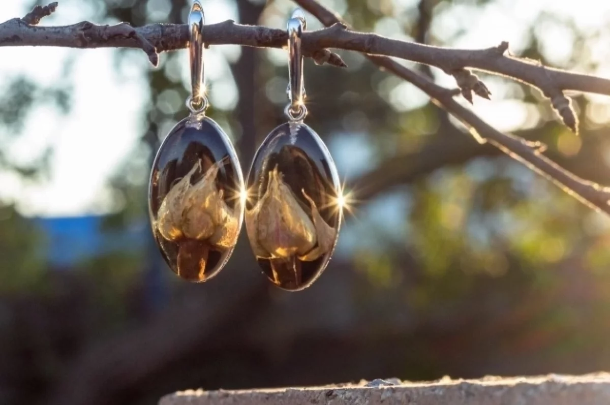 А потом интернет подкинул новую идею: создавать из смолы украшения, да не простые, а с целым растительным миром внутри. Когда Лилия увидела их, твёрдо решила: «Хочу попробовать сама».