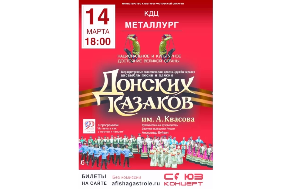 «АиФ-Черноземье» разыгрывает четыре билета на концерт государственного ансамбля песни и пляски Донских казаков им. А.Квасова (18+), который состоится 14 марта в КДЦ Металлург.