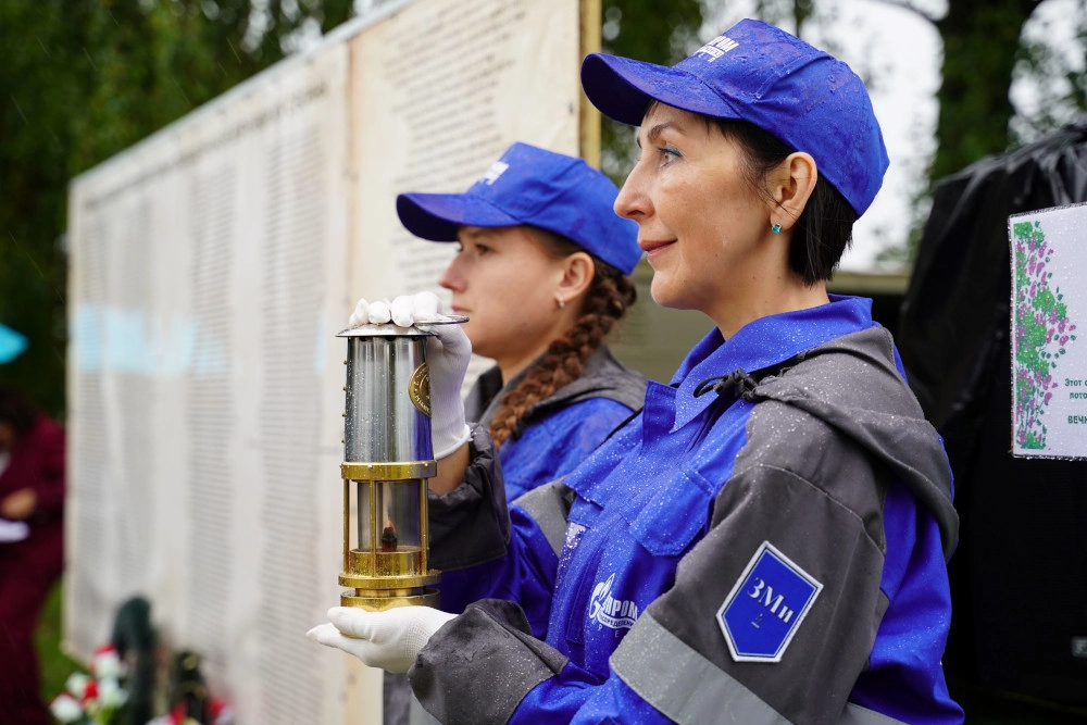 Сотрудники компании зажгли Вечный огонь от пламени, привезенного с памятного места, где также, как и в Гнездилово шли кровопролитные бои – Кривцовского мемориала в Болховском районе.