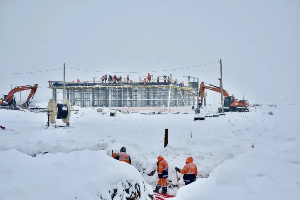 По словам главы региона, зимняя погода не повлияла на темпы работ — ежедневно здесь трудятся более 130 человек и 30 единиц техники.