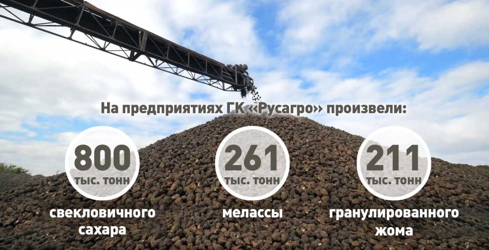 Из переработанного сырья на заводах холдинга произведены 800 тысяч тонн свекловичного сахара, 261 тысяча тонн мелассы и 211 тысяч тонн гранулированного жома.